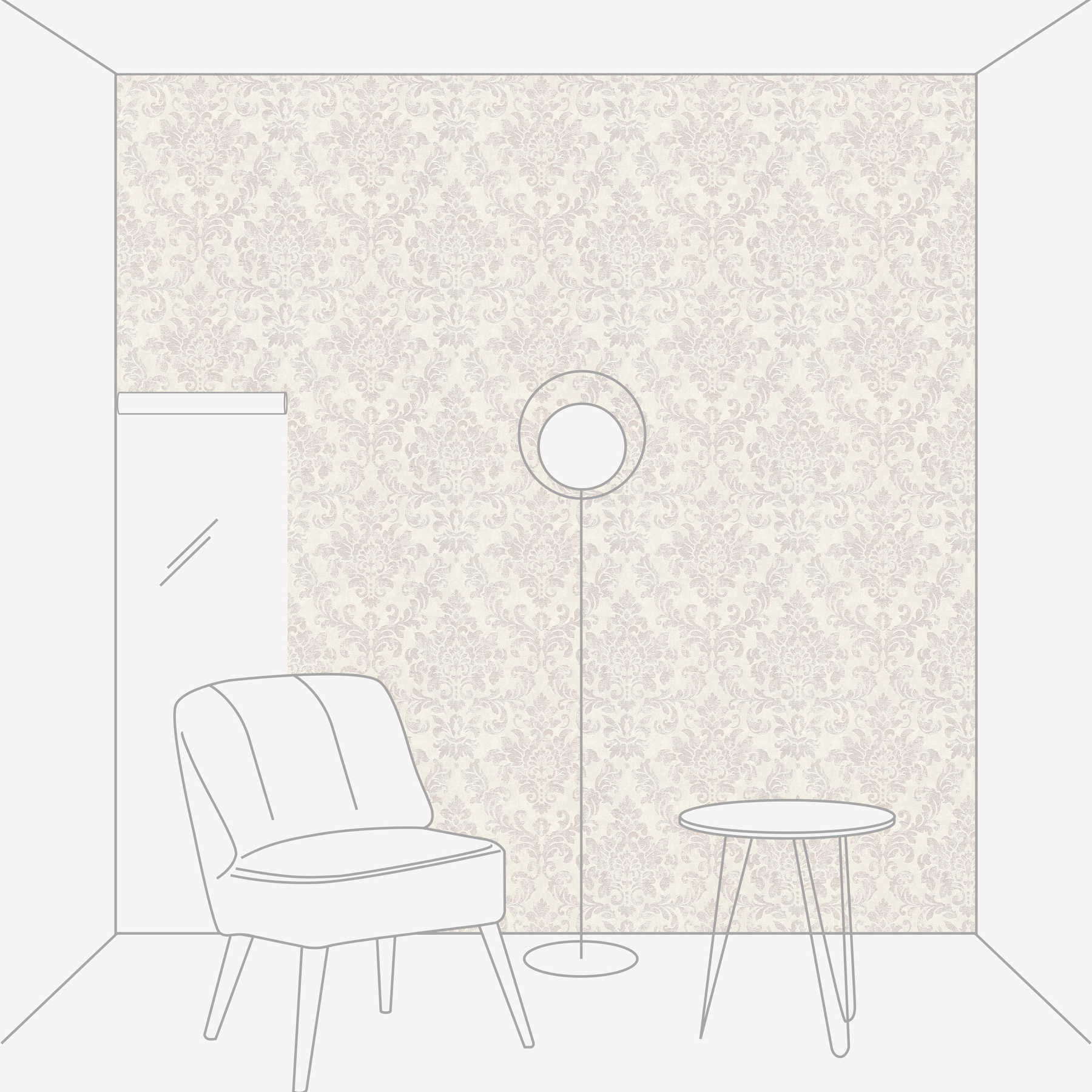 Baroque wallpaper ornaments in used look - white, grey, pink