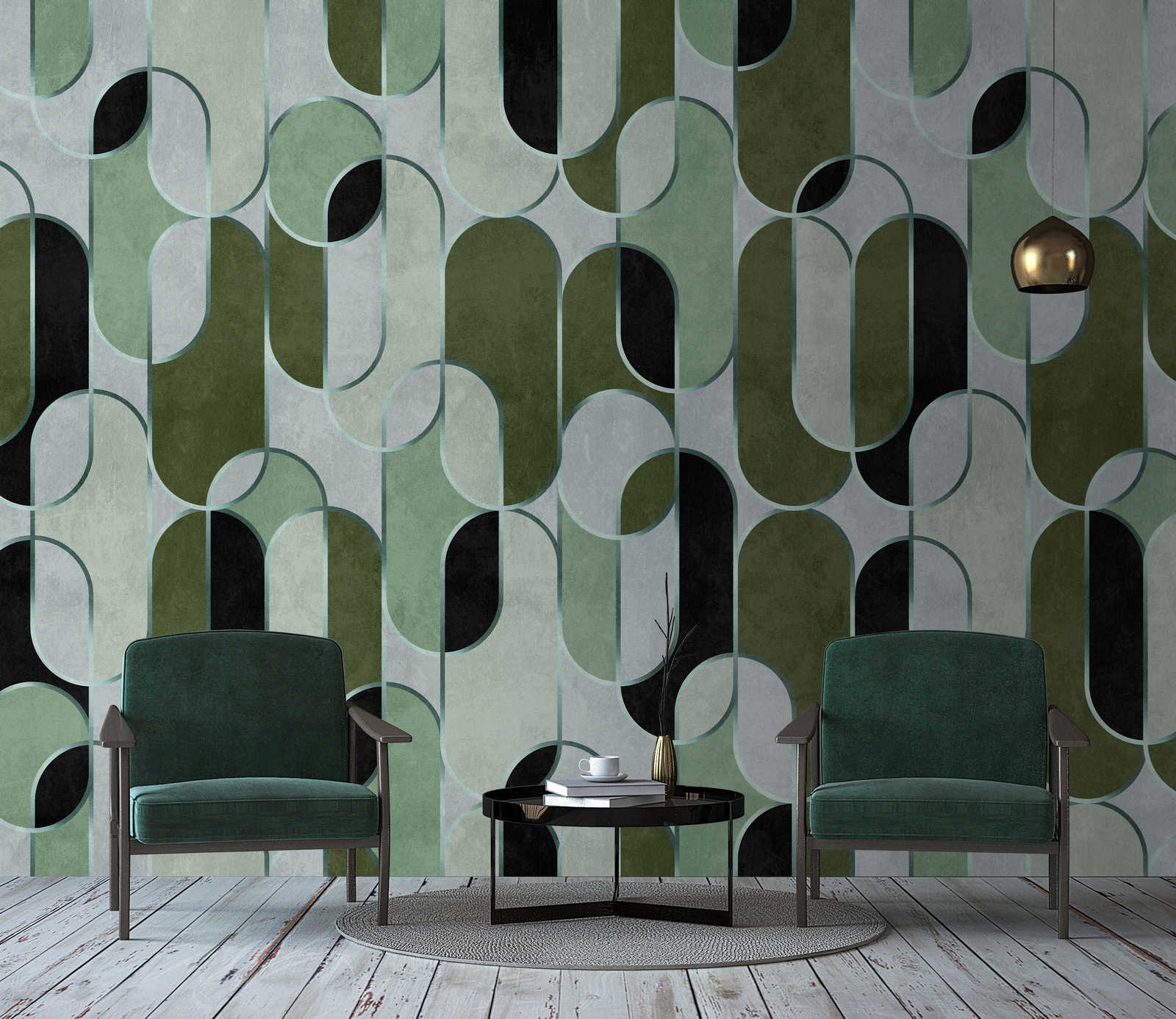 Ritz 2 - Canvas painting Retro Style, Grey & Green with Metallic Details - 0.90 m x 0.60 m