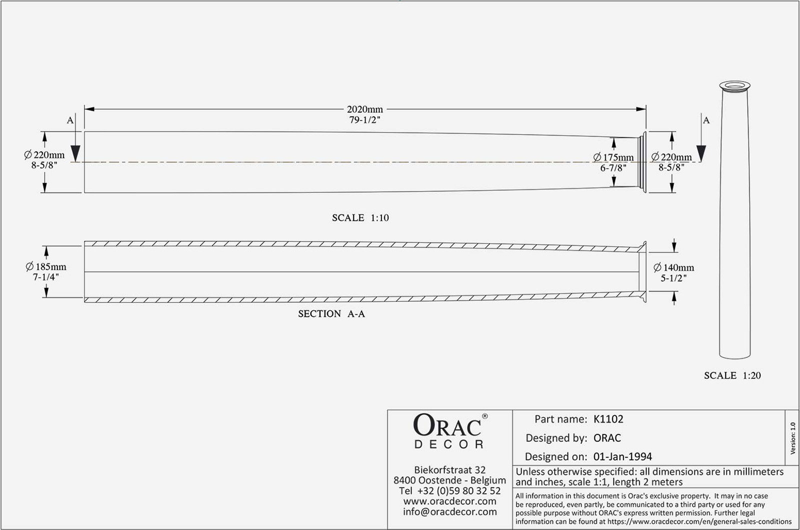 • Dimensions: 22 x 22 x 202cm