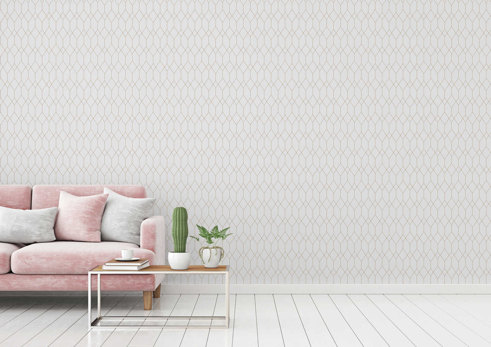 Self-adhesive wallpaper | Geometric line pattern in gold - white, metallic