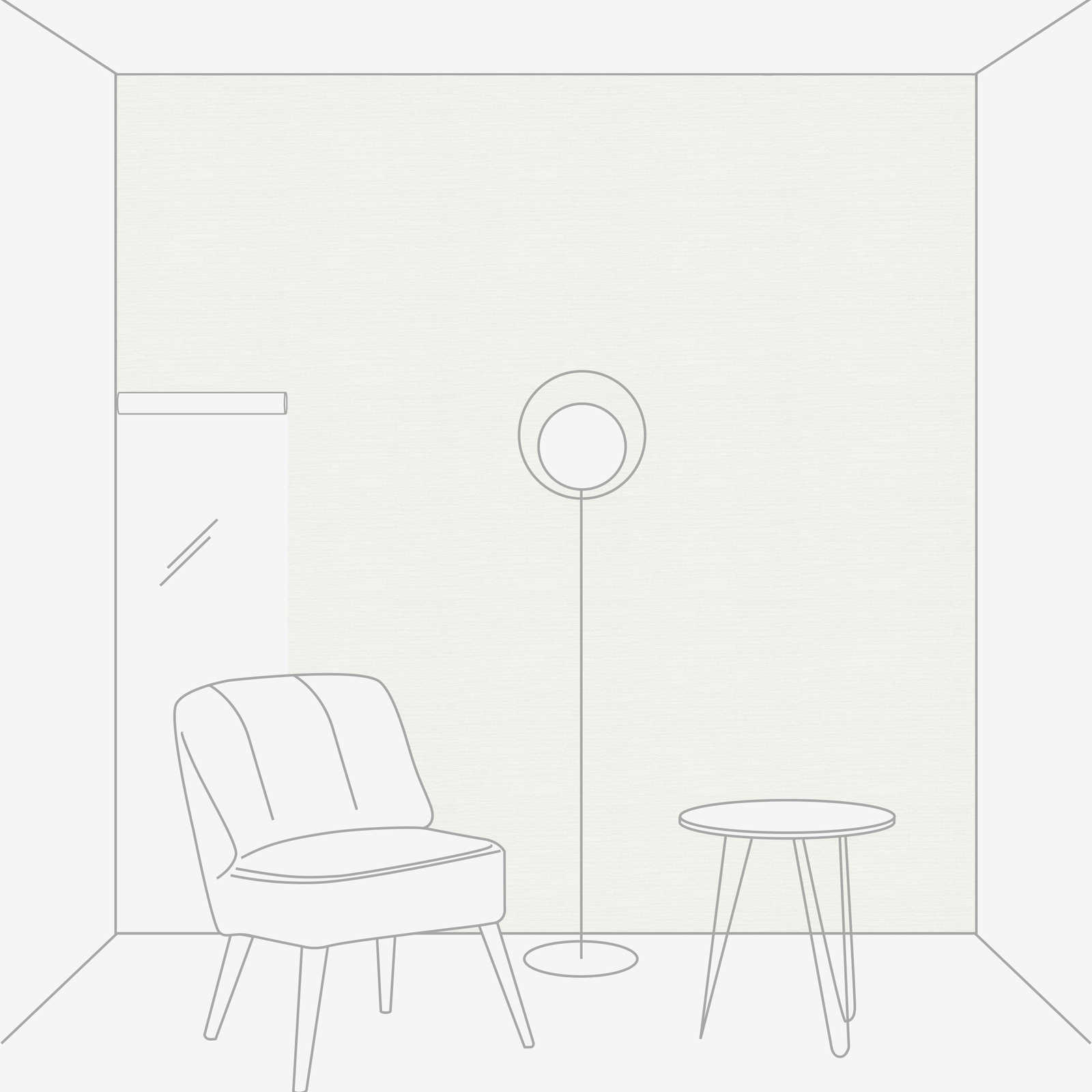A fine, even canvas texture runs discreetly over the entire surface and gives the wallpaper a textile character. The colour scheme is a warm, very light shade of grey, almost reminiscent of off-white. The surface appears matt and restrained, creating a calm, harmonious sense of space. The unobtrusive pattern and neutral colour make the wallpaper extremely versatile and provide a timeless, elegant background that allows other furnishing elements to gently come to the fore. The effect is friendly, bright and clear and supports a cosy, inviting atmosphere.