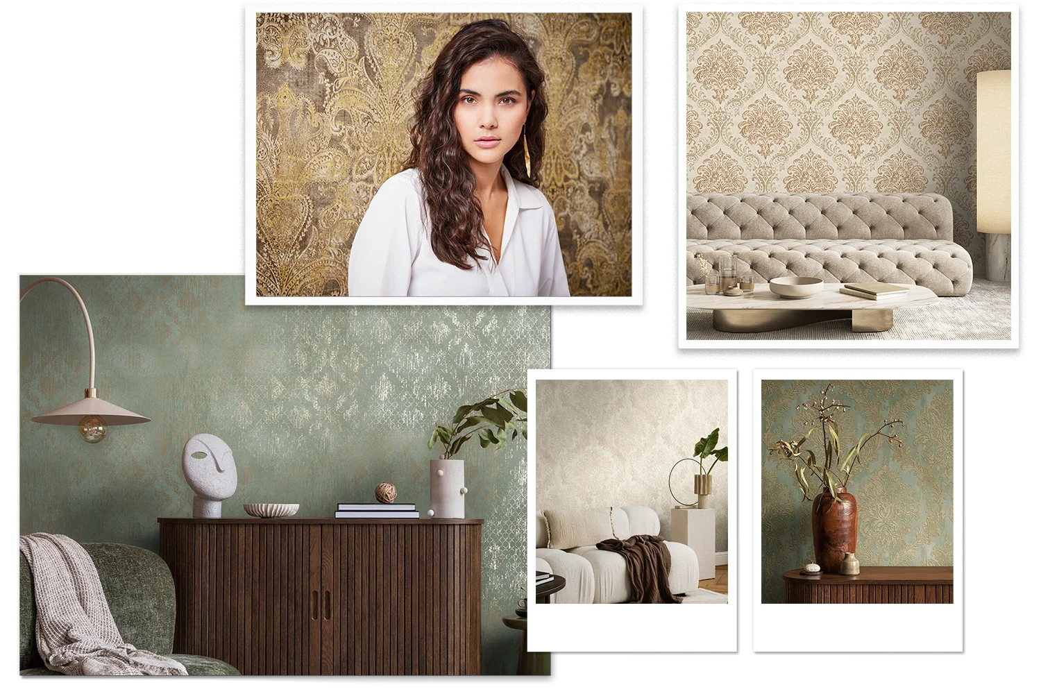 Des motifs artistiques, des formes opulentes et des détails finement travaillés caractérisent ces motifs de papiers peints baroques. Ils confèrent aux pièces une touche expressive et créent une atmosphère à la fois traditionnelle et délibérément mise en scène. Idéal pour les pièces qui doivent afficher leur caractère et déployer un effet particulier.
