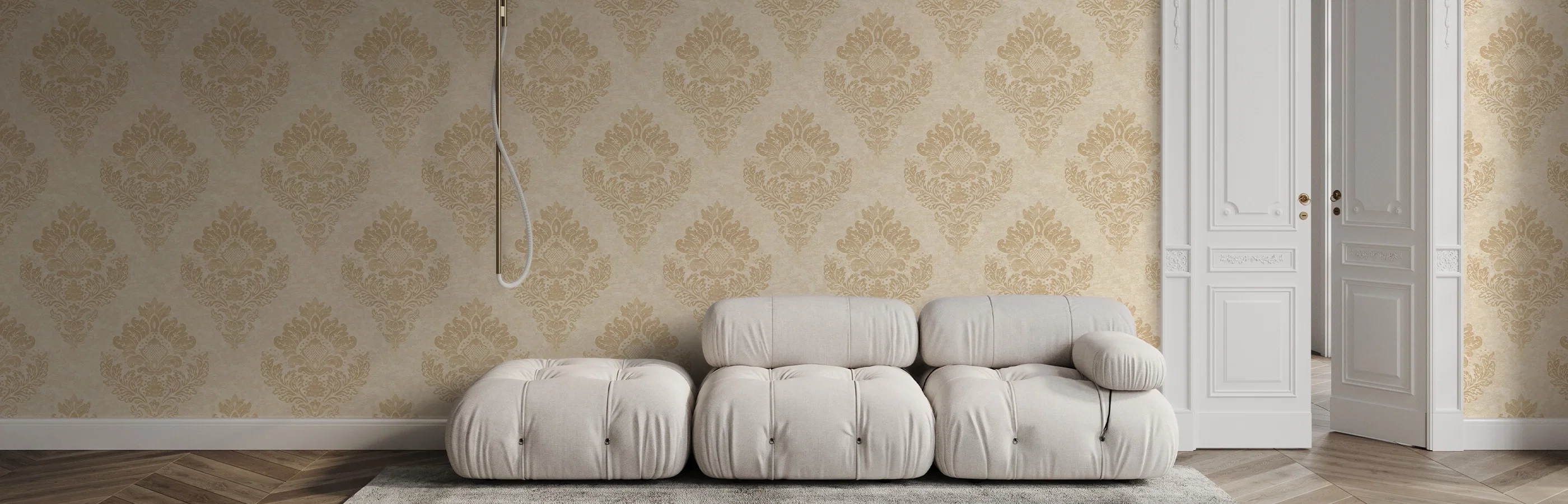 papier peint en papier de luxe avec motifs baroques en Textile véritable