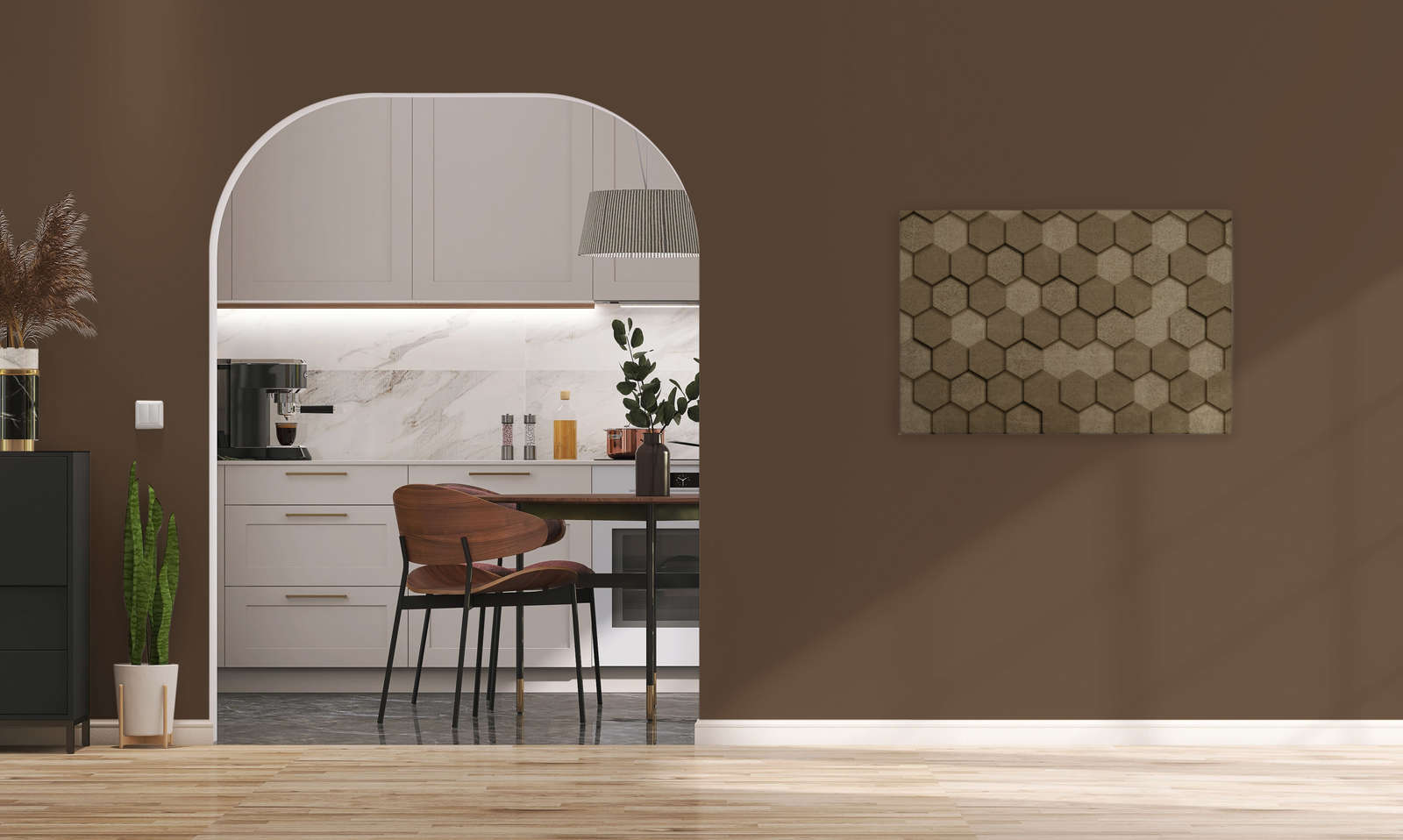 Mais même dans la cuisine, il y a plus de place qu'il n'en faut pour un papier peint numérique 3D. Que tu veuilles embellir le mur à côté de ton plan de travail ou faire briller la salle à manger de ta cuisine avec un papier peint panoramique 3D: les papiers peints numériques 3D sont parfaits pour décorer ta propre cuisine.