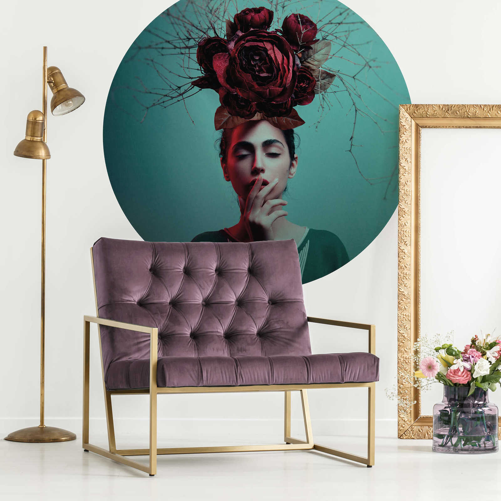 Papier peint panoramique rond Femme avec une couronne de fleurs sur la tête