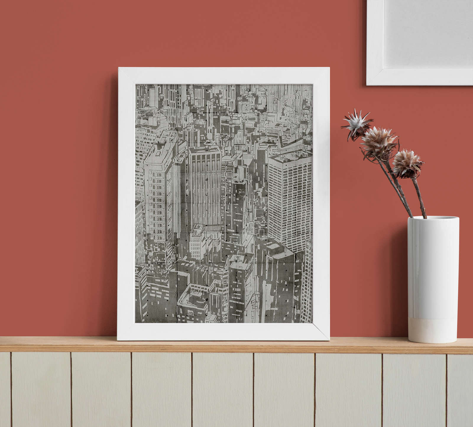 Le charme particulier du rouge brique s'épanouit surtout en association avec d'autres matériaux et couleurs naturels. Combine cette teinte avec du bois, du velours, du cuir ou du lin pour un ensemble chaleureux et confortable. Les tons crème clairs, le blanc cassé ou les tons gris doux prennent le rouge brique par la main et créent des transitions tranquilles. Les accents métalliques en or ou en cuivre apportent des points forts supplémentaires et soulignent le caractère moderne de cette peinture murale.