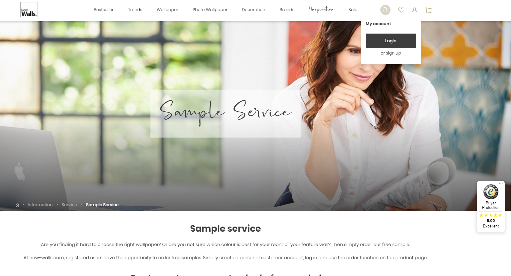 Sur New-Walls, les utilisateurs enregistrés ont la possibilité de commander gratuitement des échantillons. C'est très simple : créez un compte client personnel, connectez-vous et utilisez la fonction de commande sur la page du produit.