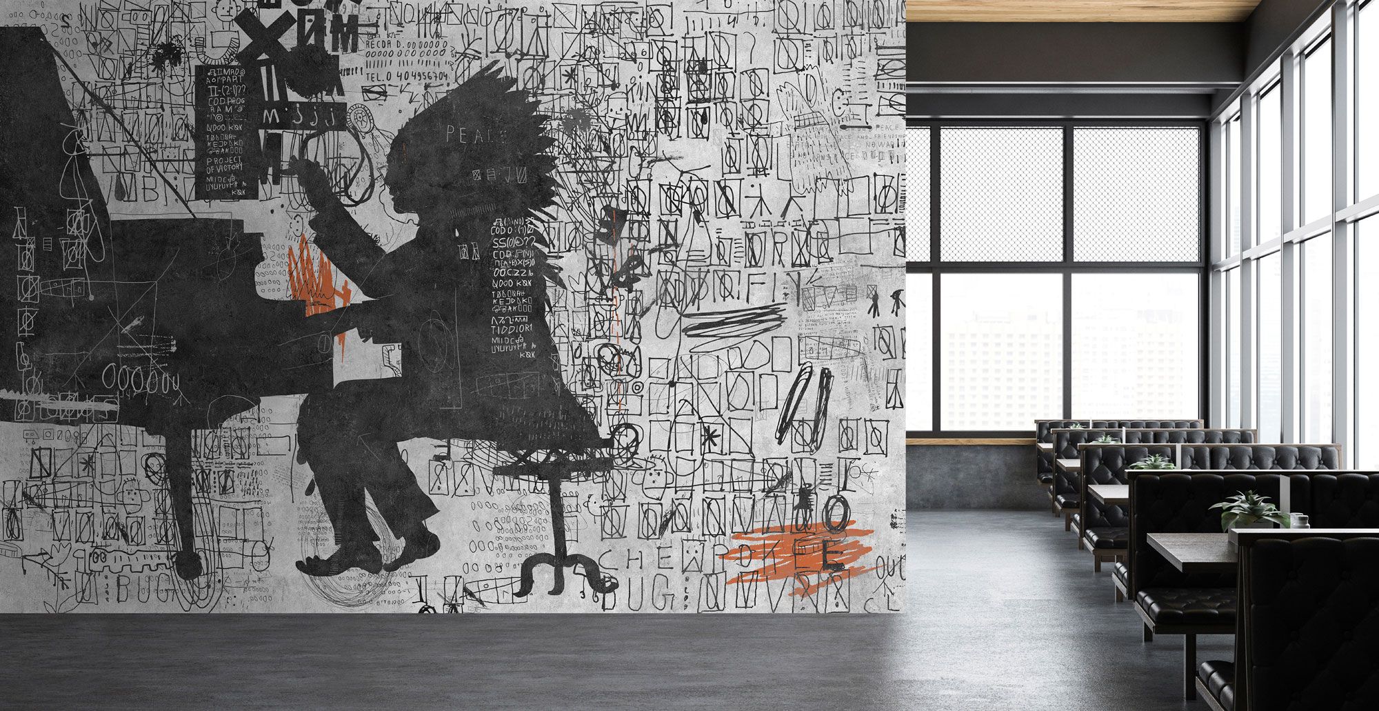 Piano Bar 1 - Street Art toile scribble design noir & gris - 0,90 m x 0,60 m