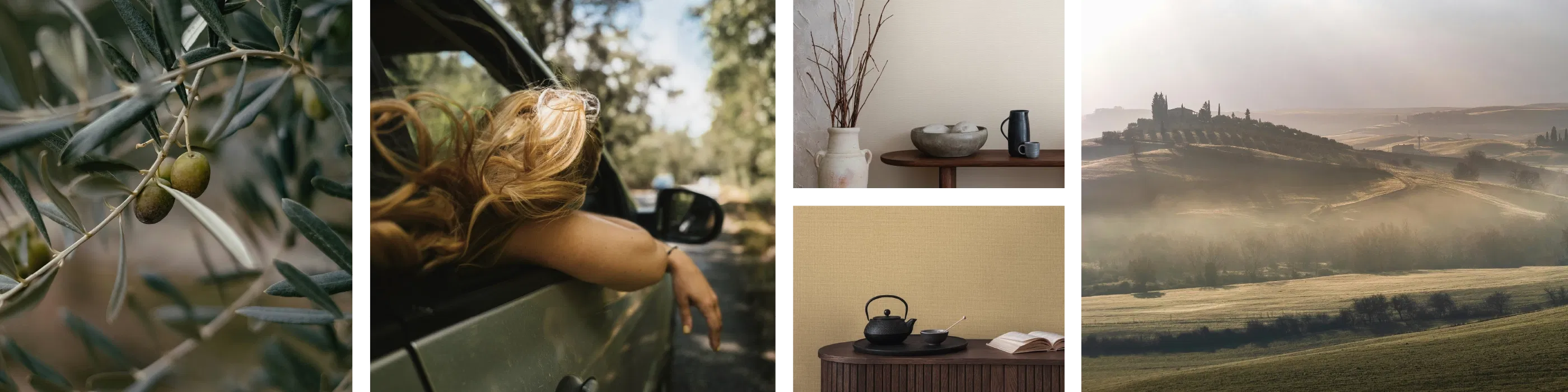 Non-woven wallpaper with a light textile look in a simple colour tone - Beige