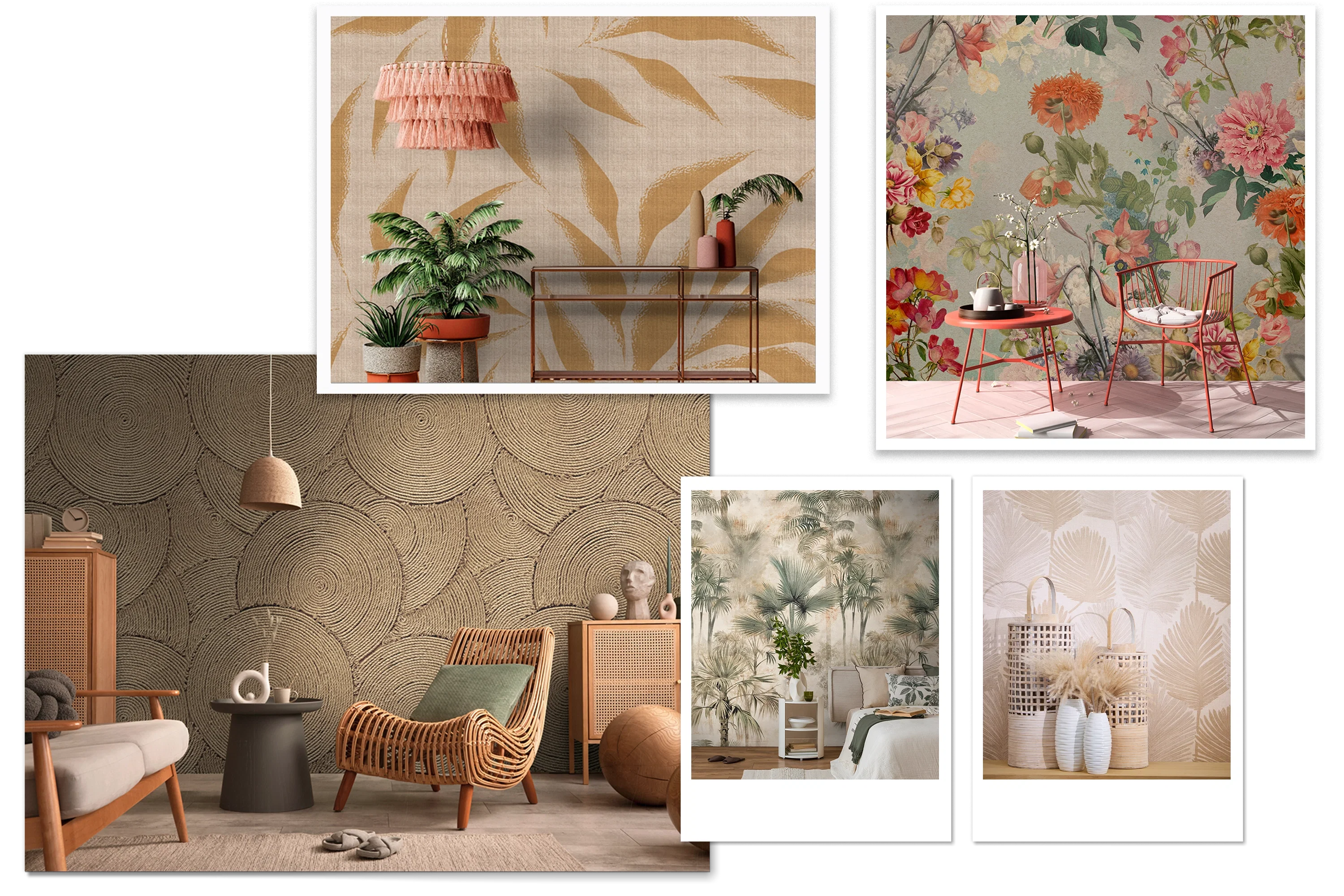 Boho wallpapers bring a unique blend of naturalness, casualness, and gentle sophistication to a room. Inspired by nature, ethnic influences, and soft color palettes, these designs make spaces feel cozier, softer, and wonderfully uncomplicated. The Boho style combines tranquility, creativity, and natural beauty into a look with a relaxed vibe.