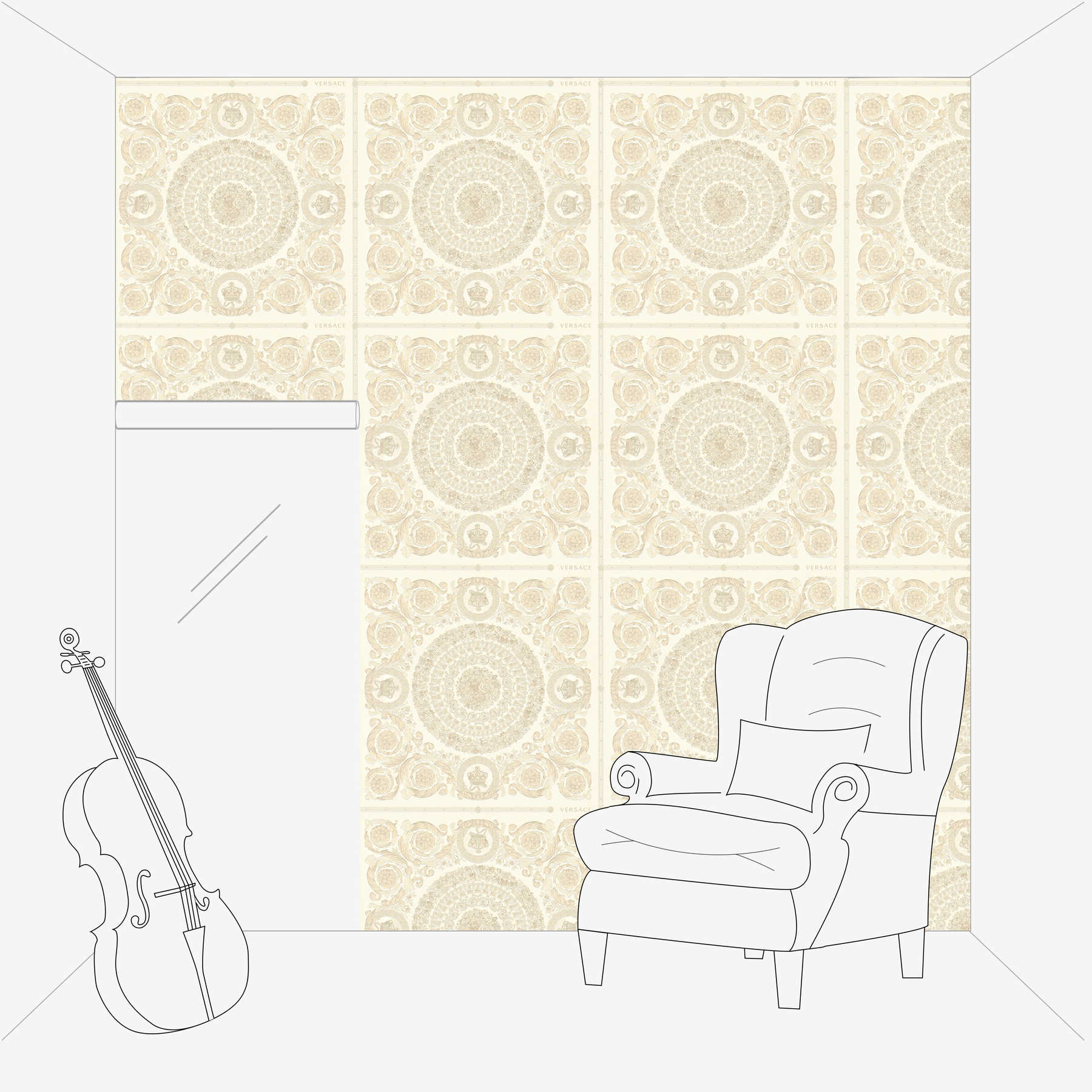 Luxury VERSACE Home wallpaper crowns & roses - beige, silver, cream