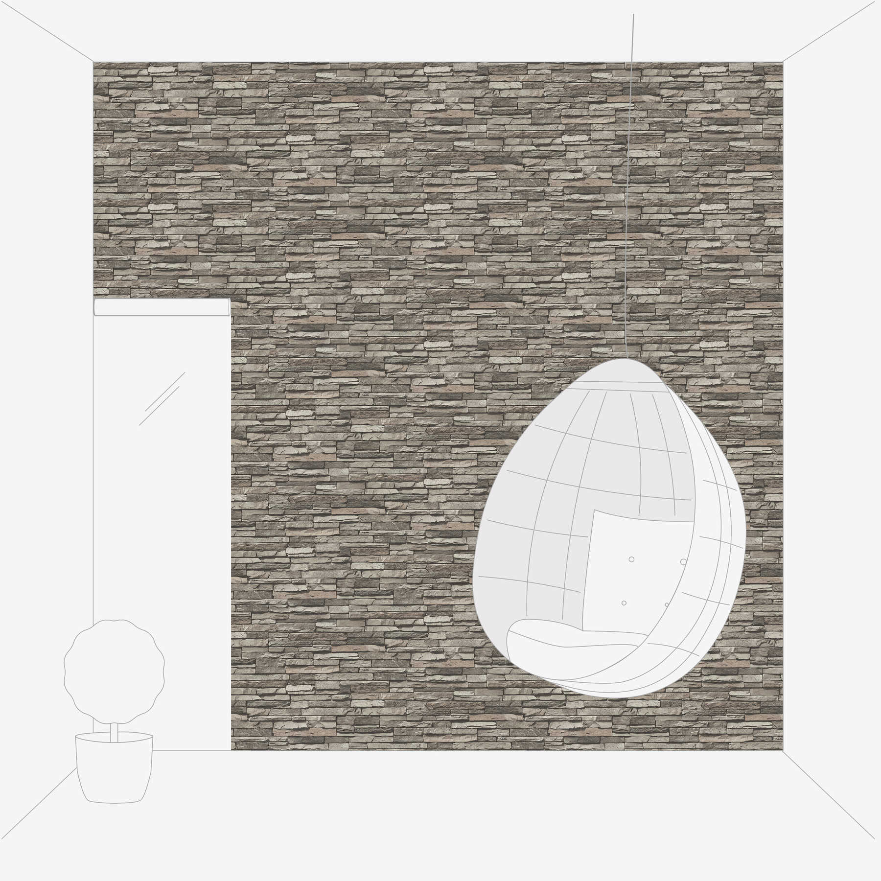 3D-behang met lichtgrijs steenmotief - grijs, crème, zwart