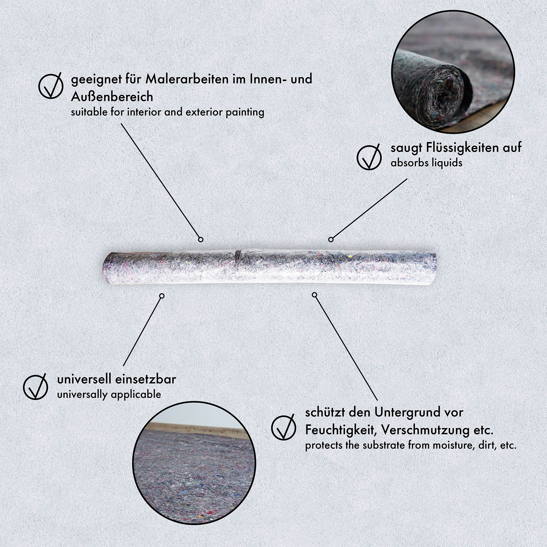 Het 1 m brede en 10 m lange maskeervlies wordt gebruikt om ondergronden te beschermen. Het vlies is gemaakt van gerecycleerde vezels en wordt gebruikt bij schilder- en behangwerkzaamheden om vloerbedekking te beschermen tegen beschadiging, verf- of pastaspatten, vocht, stof, krassen en vuil. Met 180g/m² is de veelzijdige onderlaag een stabiele en absorberende beschermlaag.