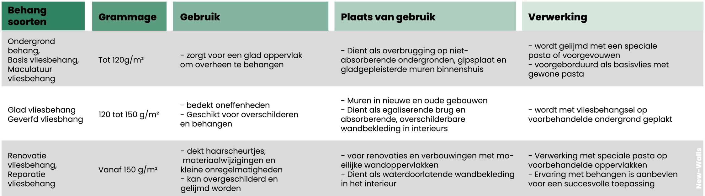 Je komt te weten welk vlies je nodig hebt voor je behangproject en wat de verschillende benamingen en vaktermen betekenen.