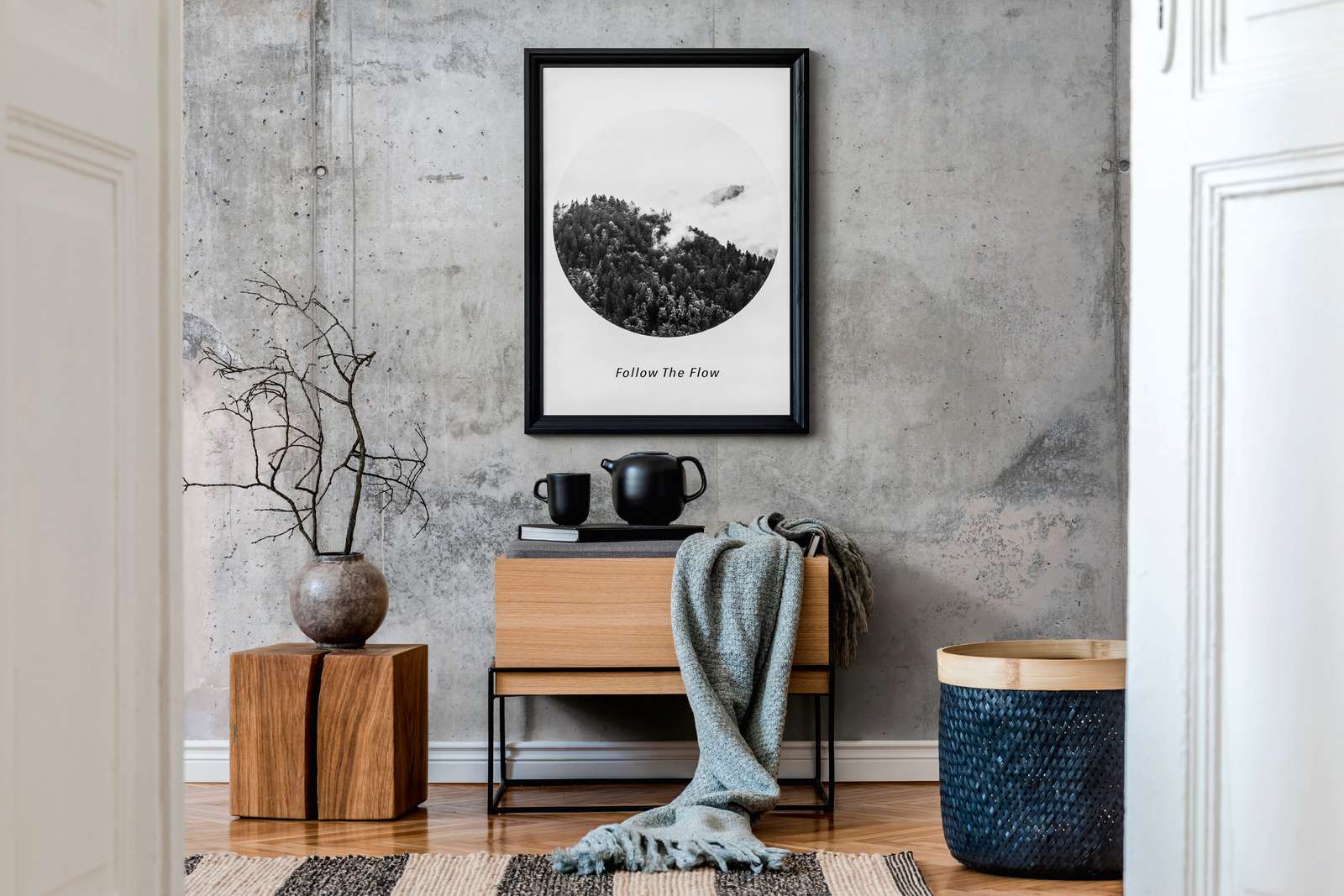 Waarschijnlijk de meest populaire match met betonbehang is de industriële stijl. Omdat Beton al een stedelijke charme heeft, kun je in een paar eenvoudige stappen een complete en stedelijke look creëren. De eenvoudigste manier om ons trendy betonbehang te combineren is met metalen meubels, waarbij vooral zwarte accenten harmoniëren met de algehele look.