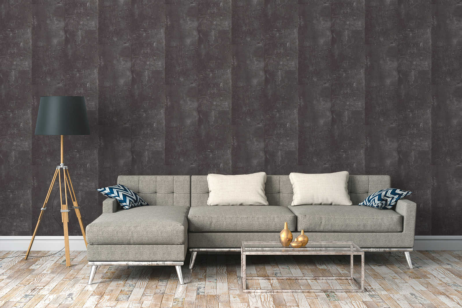 Behang met metaallook in ruwe industriële stijl - grijs, violet, blauw