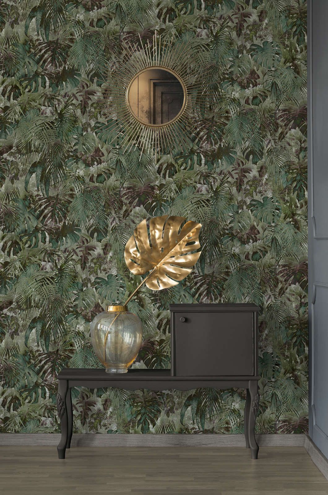 Jungle motief vliesbehang met tropisch bladmotief - groen