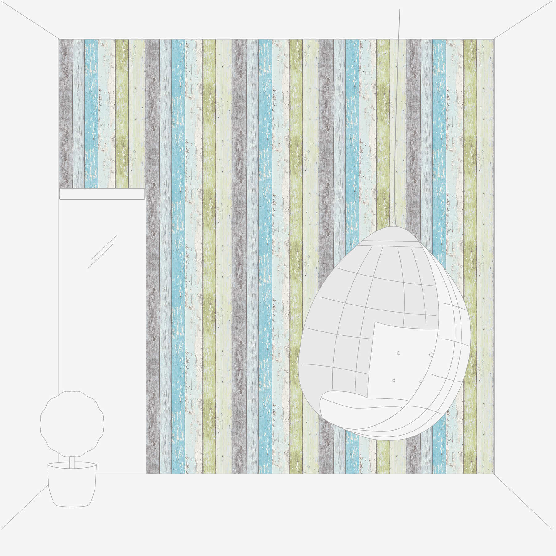 Houten behang met used look voor vintage & landelijke stijl - blauw, groen, wit