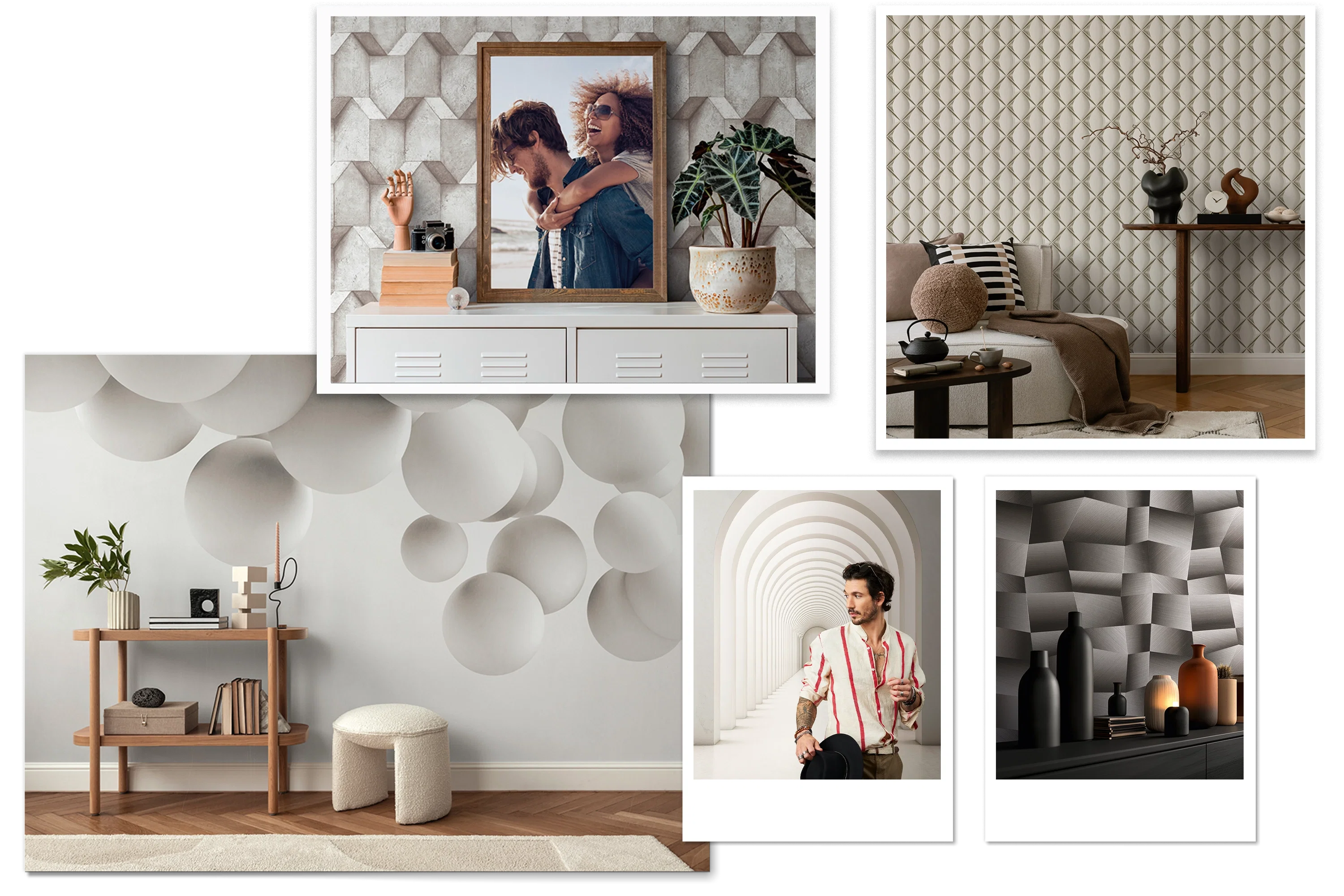 3D-motieven spelen met perspectief, schaduw en structuur en geven de muur een bijna tastbare diepte. De look oogt modern, verrassend en brengt een bijzondere dynamiek in de ruimte. Ideaal voor iedereen die visuele highlights wil creëren die in het geheugen blijven hangen.
