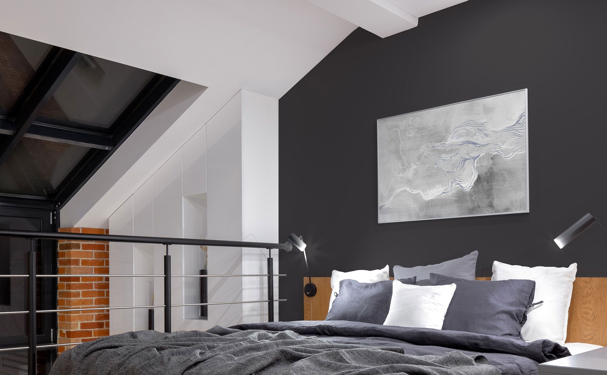 Zwart maakt ook indruk door zijn veelzijdigheid in Combinaties met moderne inrichtingsstijlen zoals industrieel, Scandi of urban loft. Het vormt de perfecte achtergrond voor designmeubels, kunstwerken of stijlvolle vazen. Zwarte Muurverf is vooral populair in slaapkamers, thuiskantoren en woonkamers, maar geeft ook een moderne twist aan kinderkamers of entreezones.