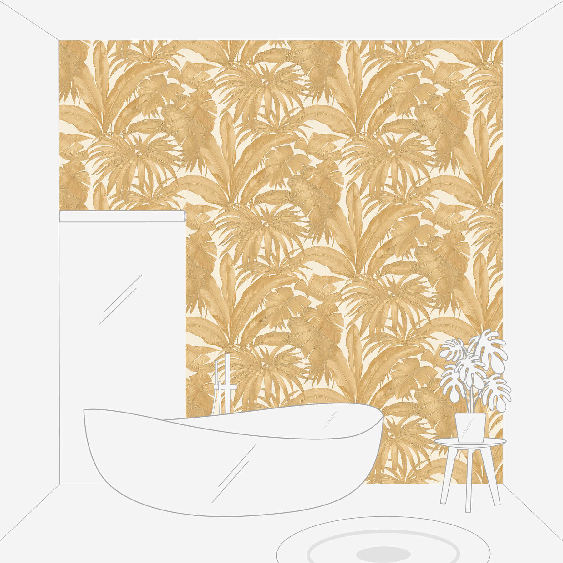 VERSACE behang met palmbomen & goudeffect - crème, metallic