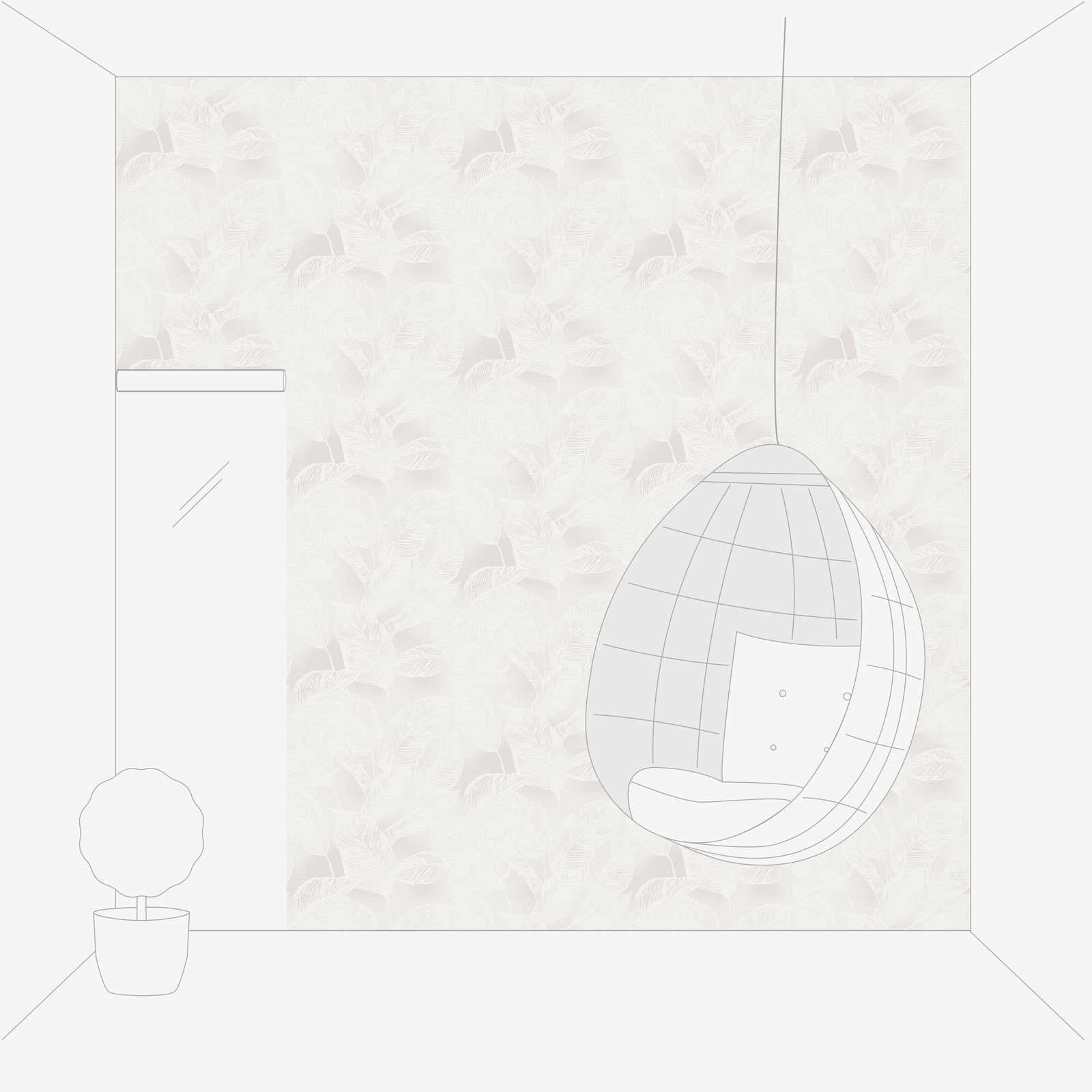 Vliesbehang met bladeren PVC-vrij - wit, grijs