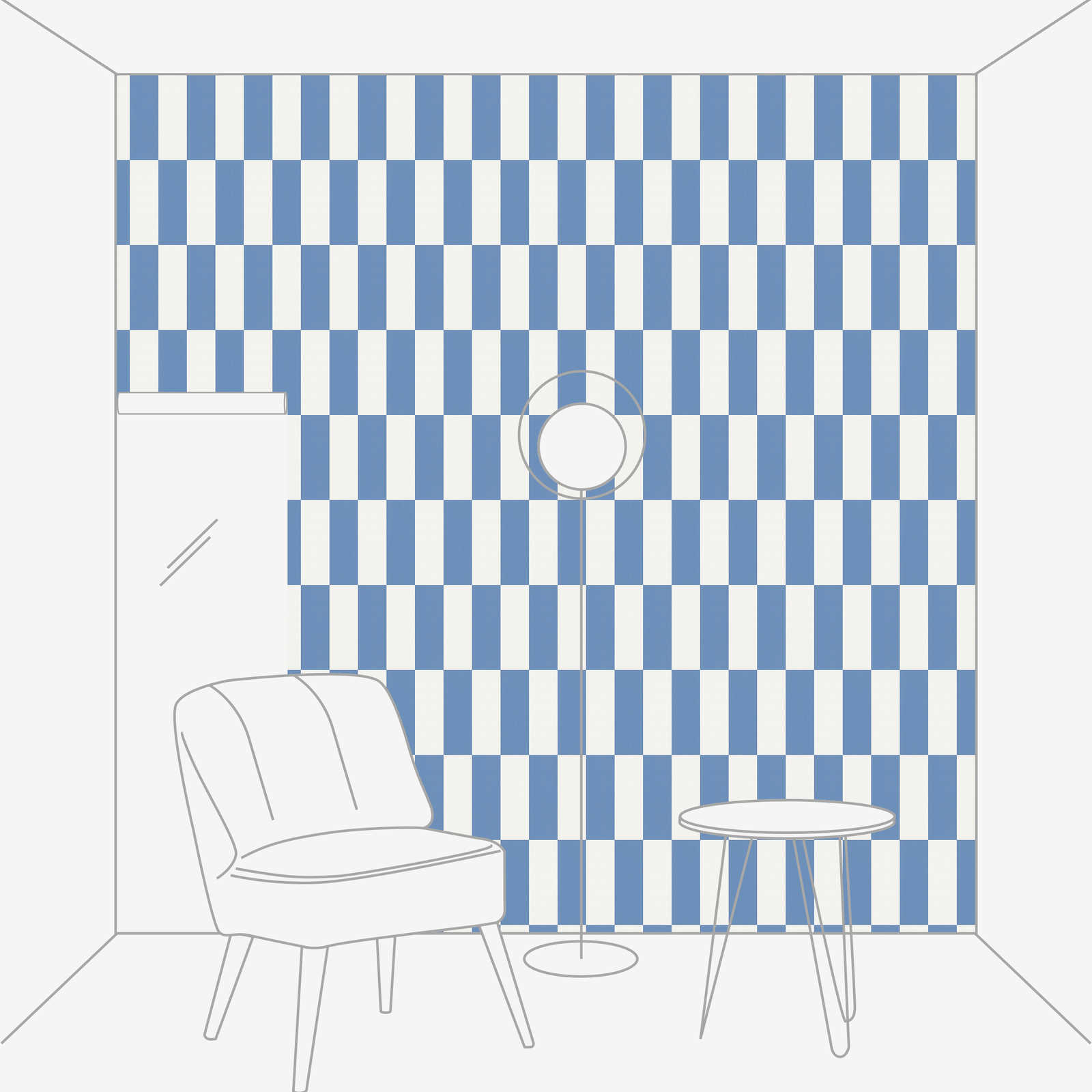 Het behangpatroon heeft een klassiek Design met blokstrepen. De strepen wisselen regelmatig af tussen een zacht hemelsblauw en een gebroken witte kleur. De verticale plaatsing van de strepen geeft de kamer een verfrissende en georganiseerde sfeer die zowel rustgevend is als de ruimte vergroot. De minimalistische stijl van het Onderlaag behang creëert een tijdloze elegantie en kan zowel in moderne als traditionele interieurstijlen worden gebruikt. De kleurkeuze van blauw en wit creëert een koele, maritieme sfeer die doet denken aan de lucht of de zee en geeft de kamer ruimte en frisheid.