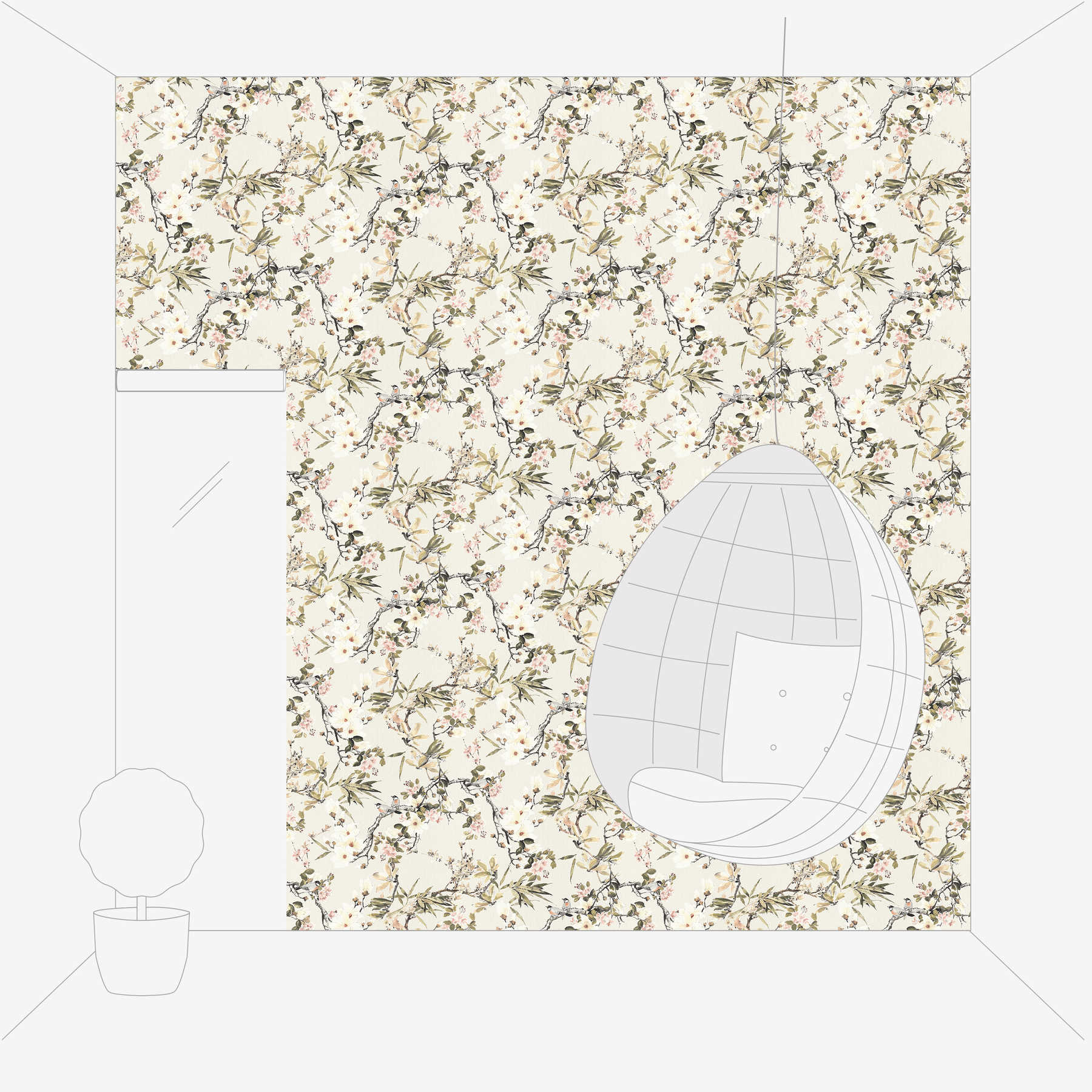 Vliesbehang natuur design bloesems twijgen & vogels - beige, veelkleurig