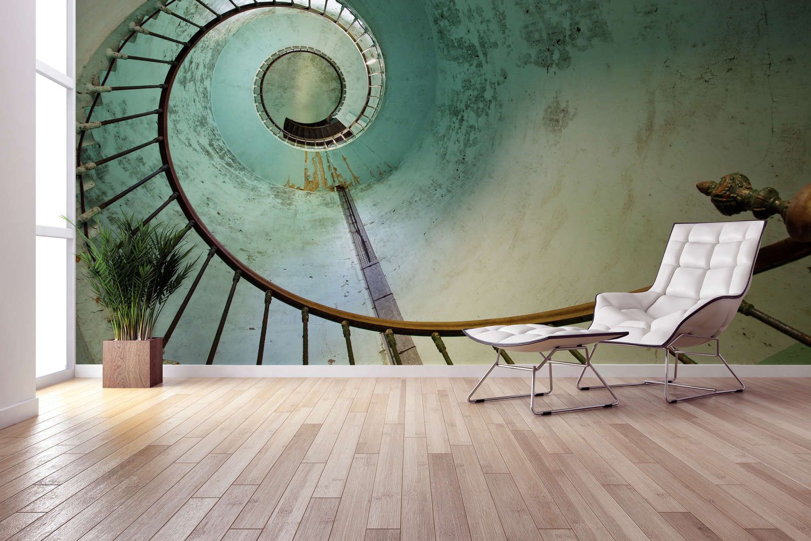 Photo wallpaper old stairs - grey, white, black