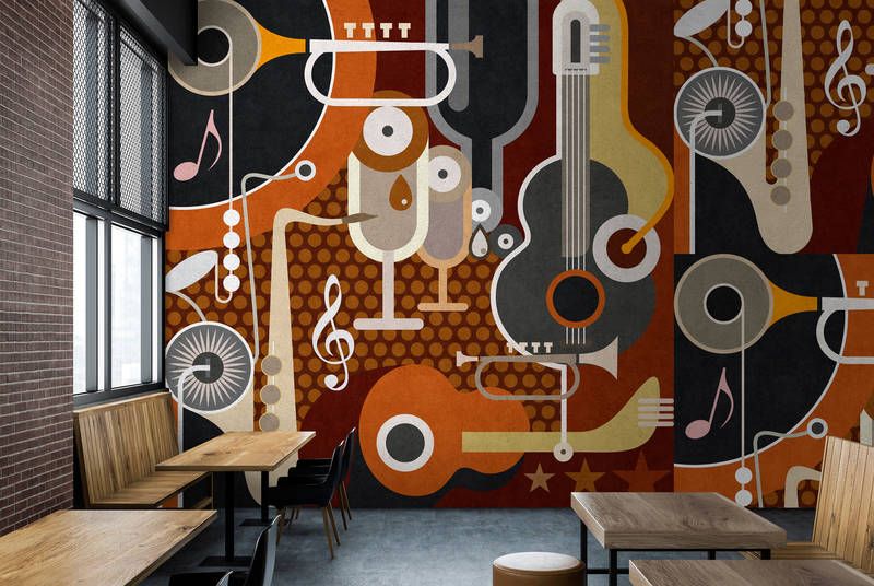 Photo wallpaper music with galaxy & neon design - purple, turquoise
