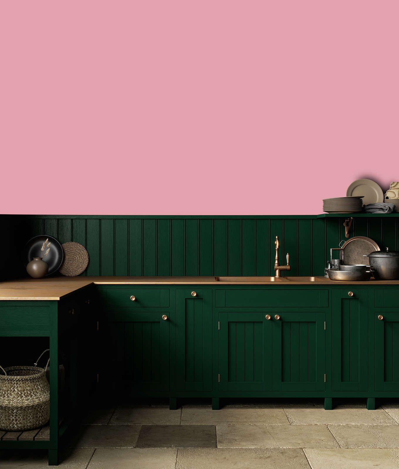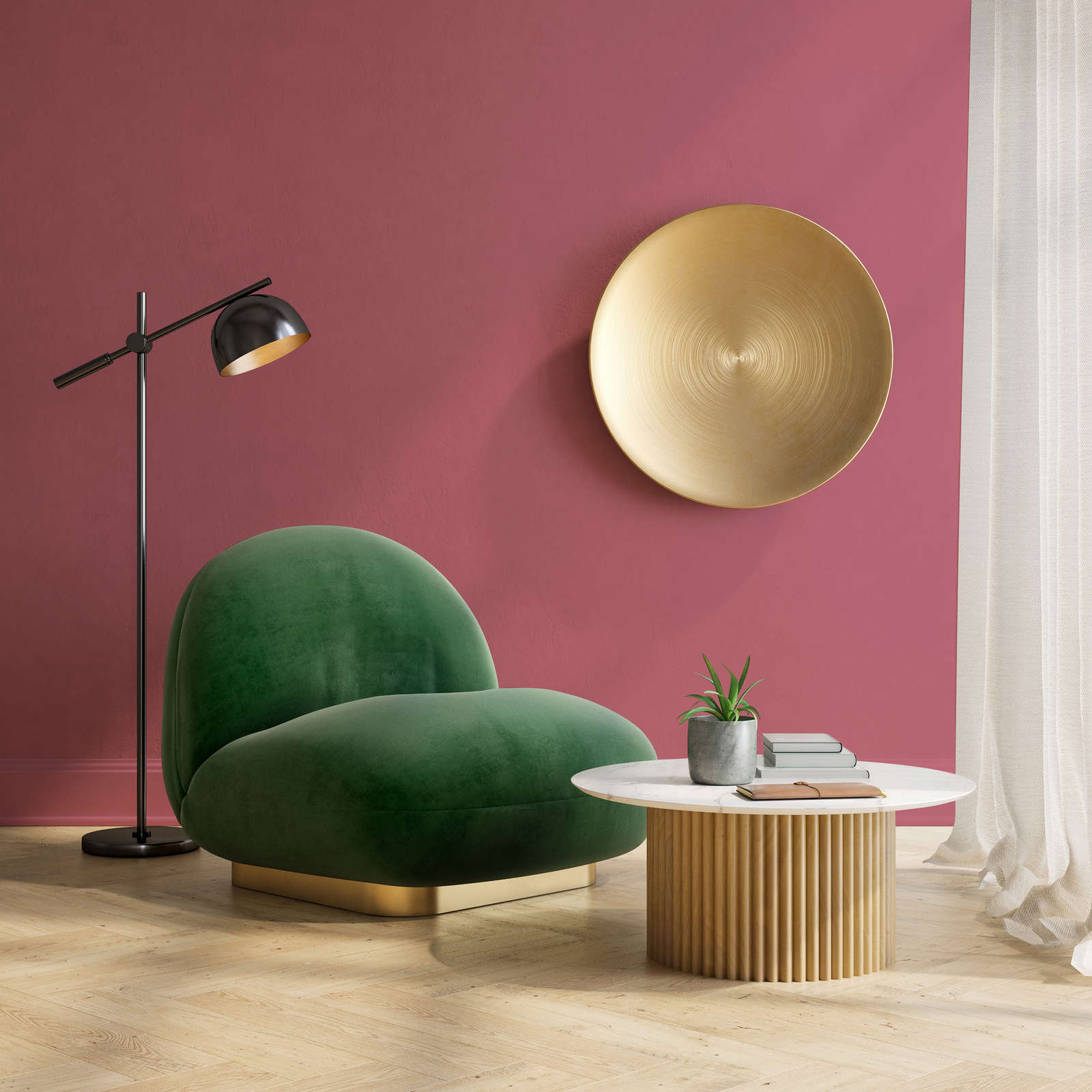 Dark pink is surprisingly flexible. The bold yet soft colour brings a special atmosphere into the room without being too overpowering. The beauty of this colour is particularly evident in combination with light-coloured furniture or natural materials such as wood and linen. Dark pink is ideal as an accent wall, for example behind the sofa, the bed or at the dining area. But it also creates a harmonious and inviting ambience as a surface colour for smaller rooms.