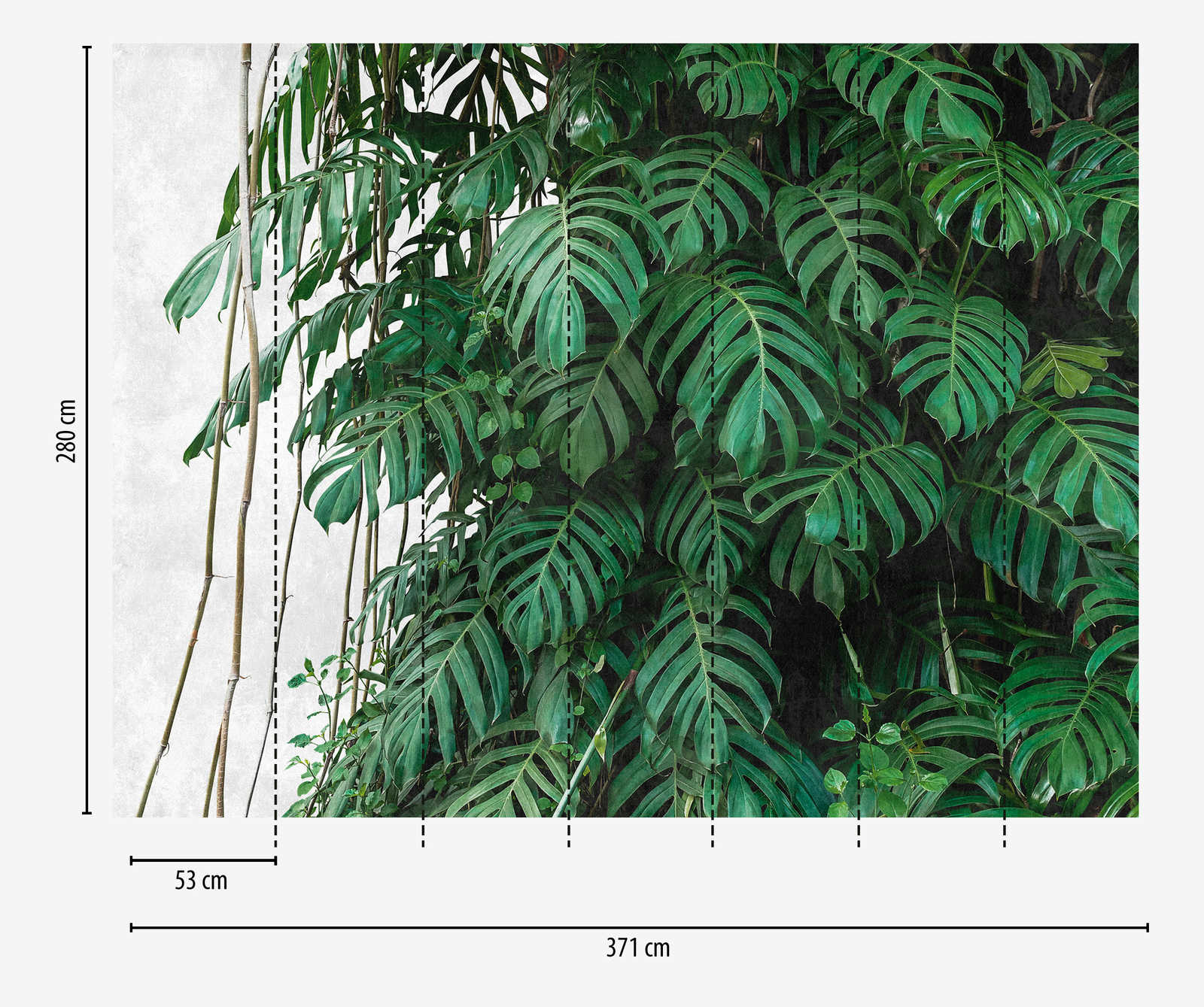 Tropical leaves wallpaper with monstera 3D photo. XXL motif wallpaper with colourful designs brings the look of a photo wallpaper in 7 easy to wallpaper strips on diene wall. The whole motif comes on a roll and is quickly and easily applied with the wall adhesive technique. Go ahead now and get the latest wallpaper trend in your four walls.