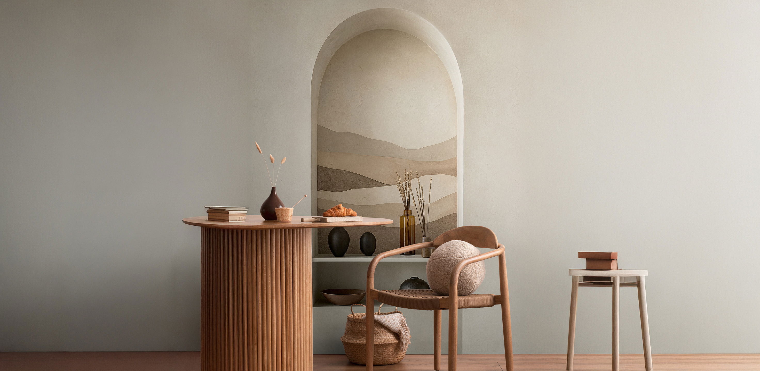 COSMOLiving - motif wallpaper with desert landscape in archway optics - Clay Mirage - beige, brown, cream