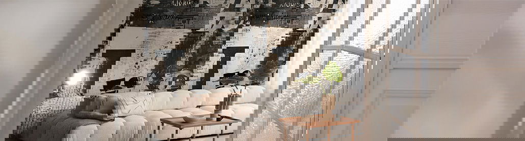 COSMOLiving - Motif wallpaper with collage of newspaper prints and typography - Newspaper - cream, black, grey