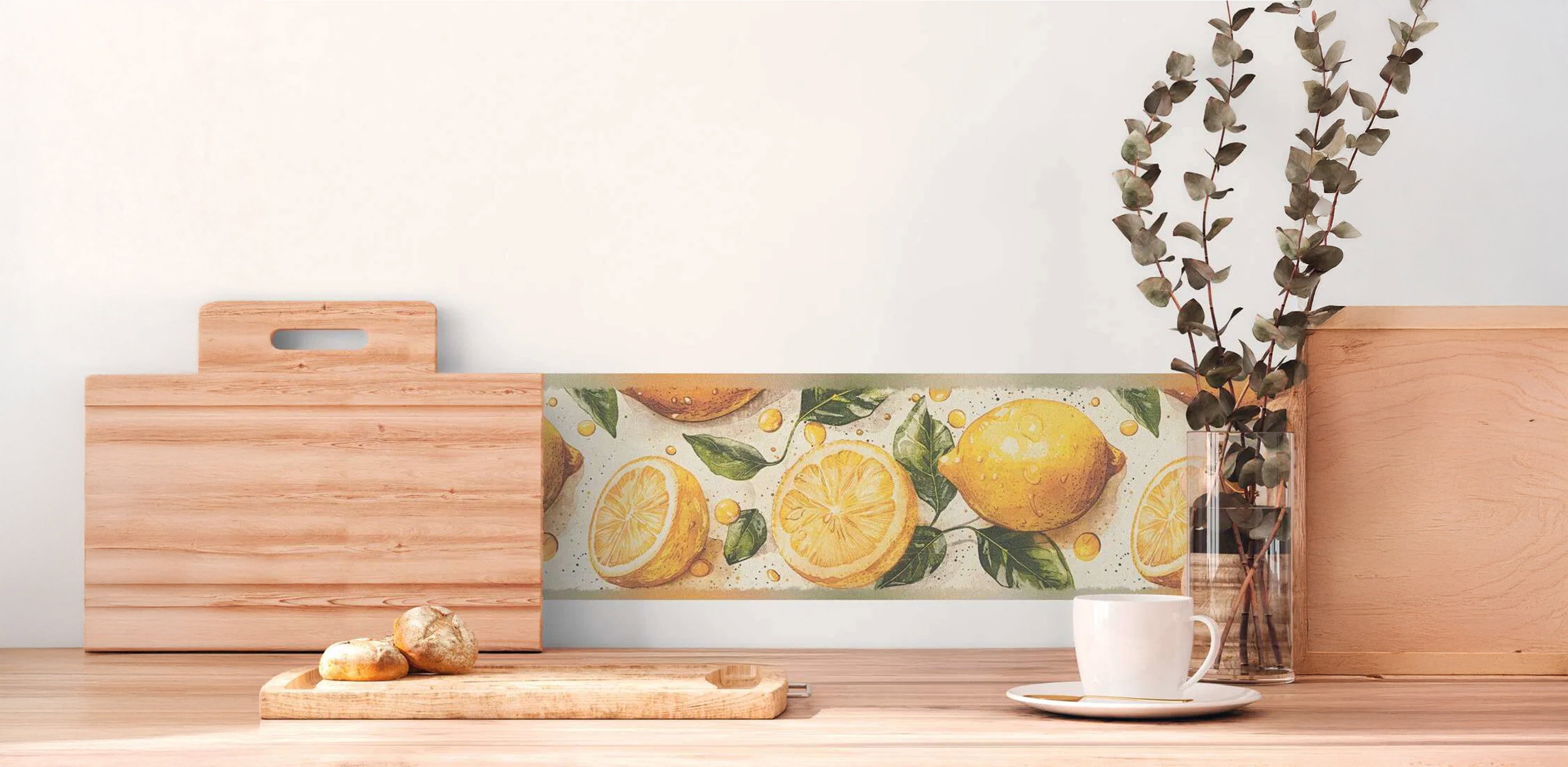 Natural non-woven wallpaper with citrus fruits, matt and subtly textured - cream, yellow, green
